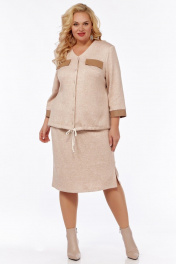 Демисезонный костюм 2-ка из трикотажа и экокожи с поясом Belinga 2273
