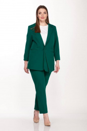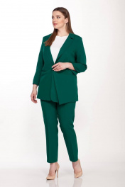 Жакет женский полуприлегающего силуэта выполнен из плотной костюмной ткани с добавлением эластана на подкладке, застежка центрально- бортовая, застегивается на две петли и пуговицы, воротник втачной с отложным лацканом, рукав втачной 3/4 двухшовный с разрезом, на полочках функциональные карманы с листочкой, на одной стороне обработан накладной карман с отлетной деталью. Длина изделия 75 см, длина рукава 52 см.