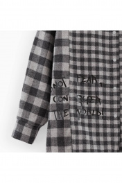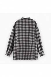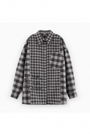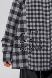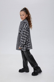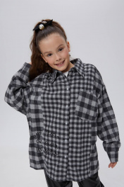Трендовая рубашка в клетку для девочки. Модель прямого силуэта. Длинный рукав со спущенной линией плеча. Оригинально расположенный накладной карман. Комфортная застёжка на кнопки. Рубашка сложна и интересна своей комбинацией разноразмерных клеток.