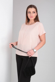 Блуза прямого силуэта с декоративными отсрочками и вырезом капля Bliss 8702 персик