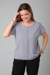 Блуза прямого силуэта с декоративными отсрочками и вырезом на спине Bliss 8702 серый - фото 1