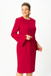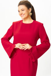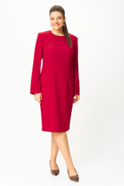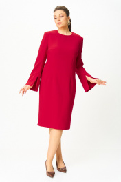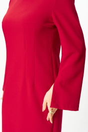 Элегантное женское платье, прилегающего силуэта: по переду и спинке вытачки по талии. Горловина круглая. Застежка на молнию в центральном шве спинки. Рукава втачные, двухшовные, расширенные к низу, в переднем шве, по низу, разрез. Платье без подкладки. Длина платья – 106 см Длина рукава – 62 см