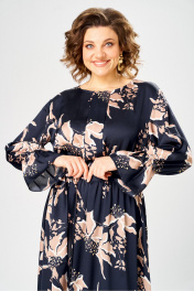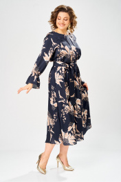 Платье женское. Элегантное женское платье из атласной ткани с крэш-эффектом. Платье полуприлегающего силуэта, отрезное по линии талии, по центру переда заложена широкая складка, горловина круглая. Рукава втачные, расширенные к низу, на расстоянии 14 см от низа рукава настрочена резанка, создавая эффект волана. Юбка расширена к низу, линия талии собрана на резинку. Платье с подкладкой только по юбке. В комплект входит сьемный пояс. Длина платье – 124 см Длина рукава – 58 см.