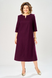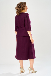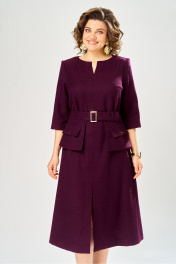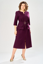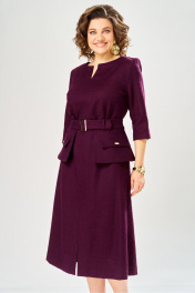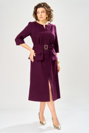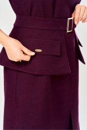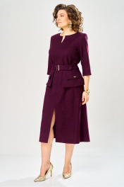 Элегантное женское платье, выполнено из ткани «Шанель» с большим содержанием хлопка. Платье полуприлегающего силуэта, с центральным швом по переду. Горловина круглая с разрезом по центральному шву. Застежка на тесьму молния в центральном шве спинки, рукава втачные, длина 3/4. Украшением платья служит сьемная баска на поясе, с пряжкой в цвете золота и декоративными клапанами. Платье без подкладки. Длина платья – 121 см Длина рукава – 45 см.