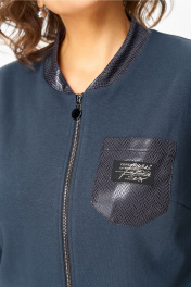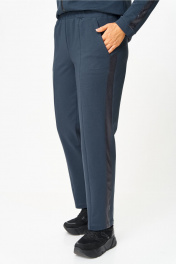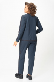 Стильный женский костюм, состоит из блузона и брюк. Костюм выполнен в спортивном стиле. Блузон полуприлегающего силуэта с центральной застежкой на тесьму молнию, с левой стороны на уровне груди фигурный накладной карман с пришивной нашивкой. Горловина оформлена планкой из отделочной ткани. Рукава втачные с отделочным лампасом по центру, низ рукава на манжете из основной ткани. По низу блузона притачная планка с декоративным шнуром. Брюки, зауженные к низу, по верху на задних половинках отрезные кокетки, по боковым швам от кокетки до низа отделочные лампасы, на уровне бедер в швах функциональные карманы. Верх брюк оформлен отрезным поясом с резинкой. Длина блузона по спинке (54-58) – 68.5 см Длина блузона по спинке (60-64) – 70 см Длина рукава блузона - 61,5 см Длина брюк (54-58) -103 см Длина брюк (60-64)-105 см