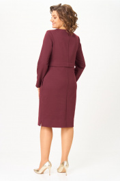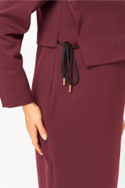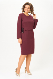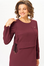 Элегантное женское платье, выполнено из трикотажного полотна. Платье полуприлигающего силуэта. По переду и спинке фигурный подрез на уровне талии. По левой стороне переда на уровне груди накладной карман с пришивной брошкой, горловина круглая, талия собрана на кулису. Рукава втачные. Брошка на груди может отличаться! Длина платья по спинке – 102 см Длина рукава – 61 см