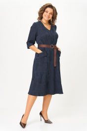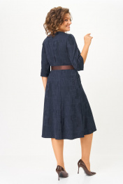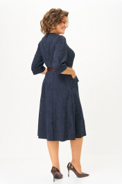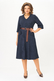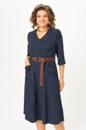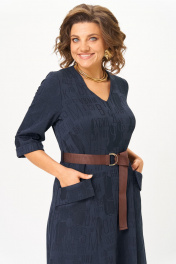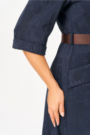 Стильное женское платье из комфортного трикотажа. Платье полуприлегающего силуэта, отрезное по линии талии, юбка шестиклинка, расширенная к низу. На уровне бедер карманы с отложенным клапаном. На лифе по переду центральный шов, горловина V-образная. Рукава втачные одношовные с отложной манжетой. В комплект входит ремень из тесьмы. Платье без подкладки. Длина платья рр48-52 – 112 см Длина платья рр 54-58 – 114 см Длина рукава - 35 см