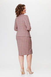Элегантный женский костюм из ткани в клетку. Состоит из жакета и юбки. Жакет прилегающего силуэта с ассиметричной застежкой на люверс и пуговицу. Правый борт оформлен отложным лацканом. Рукава втачные двухшовные. Низ жакета ассиметричный. Жакет без подкладки. Юбка зауженная к низу с рельефным швом по переду и разрезом по низу. Застежка в среднем шве по спинке, на молнию. Верх юбки с поясом на резинке по боковой части и спинке. Юбка на подкладке. Длина блузона по спинке – 60 см Длина рукава – 61 см Длина юбки по боковому шву – 66 см