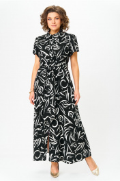 Элегантное женское платье, выполненное из легкого штапеля. Платье прилегающего силуэта с расширенной к низу юбкой. Платье отрезное по линии талии, по лифу цельно выкроенный пояс. Застежка центральная на петли пуговицы, горловина с рубашечным воротником. Рукава короткие, расширенные к низу. Платье без подкладки. Длина платья – 138 см Длина рукава – 19 см