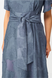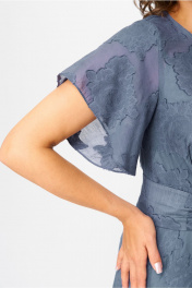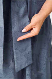 Стильное женское платье. Платье полуприлегающего силуэта с широкой юбкой, по линии талии втачной широкий пояс. Горловина круглая, по юбке на уровне бедер карманы. Застежка на тесьму молния, в среднем шве спинки, по талии в шов вставлен завязывающийся пояс. Рукава втачные, «крылышко». В комплект входит платье-комбинация из трикотажной ткани. Длина платья – 125 см Длина рукава – 19 см