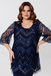 Двухслойная блузка из кружева и текстиля для торжеств BRELA 2395 синий