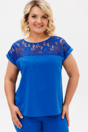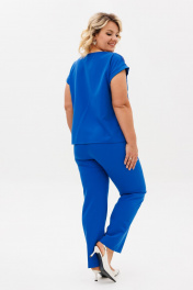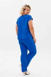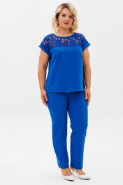 брючный комплект: блузка из поливискозной ткани с кружевом на кокетке. Блузка полуприлегающего силуэта, спинка чуть удлиненная, рукава цельнокроеные с отложными манжетами. По переду нагрудные вытачки. Длина блузки - 61 см.Брюки классические прямого силуэта, пояс на резинке , застёжка на молнию. Длина брюк с поясом - 101 см. Отличнвй вариант на работу, на мероприятие.