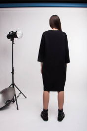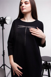 Платье О-силуэта или платье-кокон. Отличительной чертой платья является отсутствие четких линий, его расслабленый силуэт не делает явных акцентов, а плавность линий придает особую женственность фигуре .Идеальная модель для фигуры типа "яблоко" и для тех, кто хочет визуально выровнять прапорции. Если вы "груша", то зауженный силуэт сделает низ фигуры более изящным и стройным. Девушкам с узкими бедрами о-силуэт поможет визуально расширить область бедер за счет свободного кроя. Платье умеренного объема. Перед с нагрудными вытачками. Карманы в боковых швах. Горловина округлой формы с притачной обтачкой из основной ткани. Рукав с одним швом, длина 3/4. Платье декорировано аппликацией из страз премиум класса,выглядит особенно эффектно при искусственном освещении. Платье изготовлено из гипоаллергенной, деликатной и приятной для тела трикотажной ткани - футер двухнитка пенье (трикотаж высшего качества). Платье маркируется ростом - 170, рекомендуется на рост от 165 до 175см,рост девушки на фото 170 см.