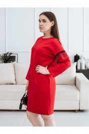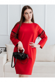 Женское нарядное платье. Силуэт платья бочонок/кокон. Линия плеча спущена, рукав браслетной длины. Пройма рукава декорирована тесьмой с металлическими цепочками. Платье изготовлено из плотного вискозного эластичного полотна, ткань не просвечивается, хорошо держит форму, цвет серый с синим оттенком. Размер платья на девушке 46, параметры девушки 172-93-69-98.