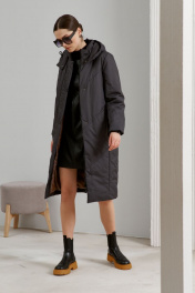 Пальто женское до колен из плащёвой ткани с капюшоном и карманами BURVIN 8715-61