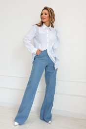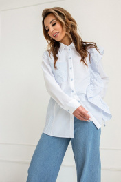 Рубашка из текстиля с рельефами и карманом из экокожи Butеr 2638 бело-голубой