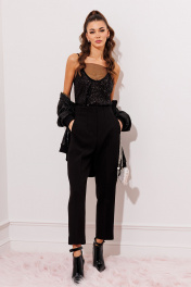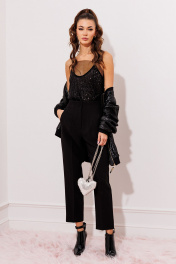 Черная блузка из трикотажа с пайетками и сеткой Butеr 2934 черный