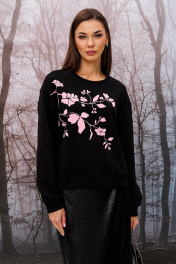 Джемпер укороченный прямого силуэта с печатью и манжетами Butеr 2950 черный-пудра