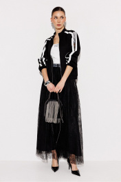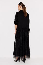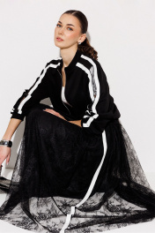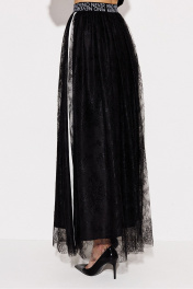 Юбка длинная А-силуэта из кружева на подкладке. Пояс из декоративной резинки со шрифтовой композицией. По бокам лампасы