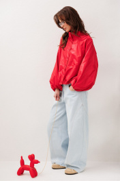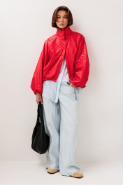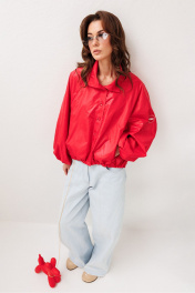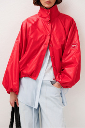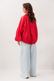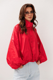 Куртка прямого силуэта с рукавом реглан внизу на притачной планке со вставленной в него резинкой. Полочка с центральной застёжкой на петли пуговицы, и карманами в рельефах. Спинка длиннее полочки и по низу куртки вставлена резинка с фиксатором. Воротник-стойка с застежкой на петли-пуговицы. Куртка из плащевой ткани на подкладке.