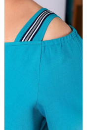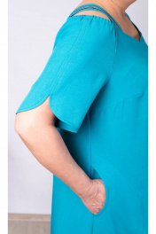 Свободное хлопковое платье А-силуэта для жарких летних деньков. Открытые плечи перехватывают широкие бретели с втачными рукавами до локтя со срезанным окатом и резинкой по верху. Разрезы в боковых швах создают свободу движения. Ювелирно выполненная отделочная строчка по среднему шву и по горловине переда стройнит и украшает изделие.
