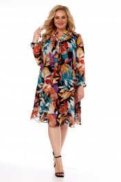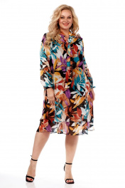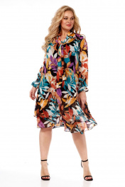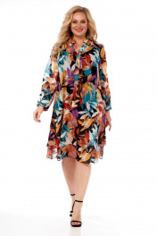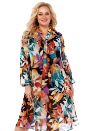 Нарядное шифоновое платье от Celentano. Горловина платья V-образной формы, воротник обработан стойкой, переходящей в бант. По полочке обработана кокетка, спинка цельная. Рукав втачной одношовный, низ рукава на резинке. Платье на текстильной вискозной подкладке, к подкладке притачан волан. Длина изделия по спинке 110 см. Длина рукава 64 см.
