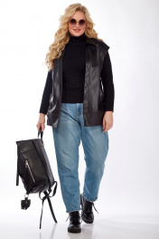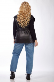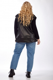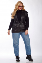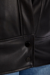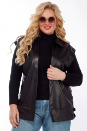 Модный жилет из экокожи от Celentano. Полочка и спинка жилета с кокеткой. Пройма жилета по спинке и полочке с притачной фигурной закрытой планкой. На полочке функциональные карманы в рамку. Спинка цельнокроеная. Воротник втачной отложной. По низу изделия идет широкая планка, на которой расположена центральная застежка на две кнопки. По планке обработаны паты на шлевках с полукольцами._x000D_ Платье выполнено из экокожи высокого качества, изнанка в ткани - замш. Ткань тянется. В комплект входит съёмный пояс из основной ткани с полукольцами._x000D_ Длина изделия 71 см с учетом планки. Ширина планки 10 см._x000D_ Рост модели 170 см._x000D_ _x000D_