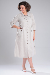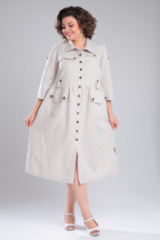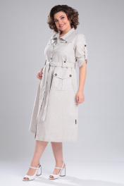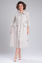 Очаровательное льняное платье в стиле "сафари" от Celentano длиной миди. Застежка центральная на петли и пуговицы, воротник втачной отложной. По полочке и спинке платья идет подрез по линии талии, нижняя часть платья присборена. По талии выполнены паты для пояса. Полочка асимметричная с нагрудными вытачками. Правая половинка с отлетной кокеткой, на левой половинке карман с клапаном. Ниже подреза расположены функциональные накладные карманы с клапаном. Спинка разрезная с центральным швом и талиевыми вытачками. Рукав 3/4 одношовный втачной с притачной манжетой снизу. На рукаве имеется хлястик для регулировки длины, застегивающийся на пуговицу. Платье выполнено из качественного белорусского льняного полотна (пр-во Орша). Ткань не тянется. Все пуговицы на платье натуральные кокосовые. Длина изделия по спинке 116 см., длина рукава 47 см с учетом манжеты. В комплекте пояс изосновной ткани. Рост модели на фото 170 см, 52 размер. Наше оригинальное платье из натурального льна будет комфортно для повседневного использования весной и летом. Красиво будет смотреться также с поясом контрастного цвета.