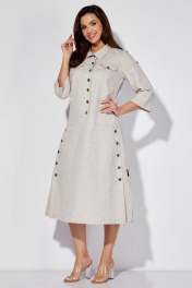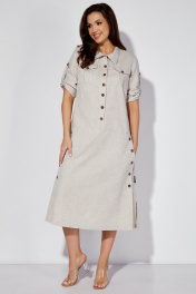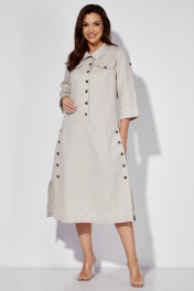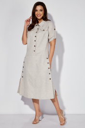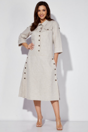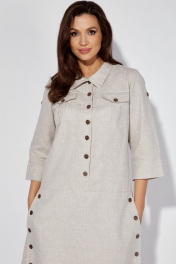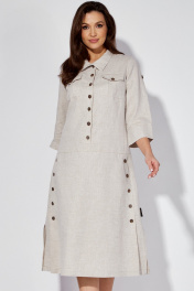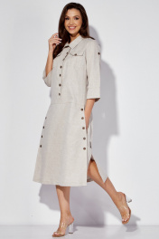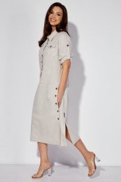 Льняное платье-сафари с разрезом и поясом из основной ткани Celentano lite 5025.2 натуральный