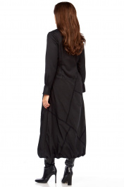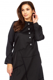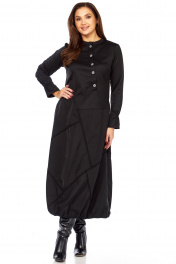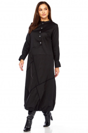 - ОписаниеПредставляем миди-платье созданное для тех, кто ценит индивидуальность, комфорт и современный шик. Его главная изюминка – уникальный асимметричный крой юбки, где каждый элемент расположен под неожиданным углом. Виртуозное сочетание деталей создает эффект легкости и непринужденного шика, а декоративное кружева подчеркивают архитектурность силуэта. Сдержанный воротник-стойка и элегантная планка с контрастными пуговицами добавляют нотку классики, а объемные манжеты с легкими сборками привносят романтичный акцент. Выполненное из мягкой, струящейся ткани глубокого черного цвета, это платье не только выглядит эффектно, но и дарит невероятный комфорт в движении. Свободный крой идеально скрывает все, что нужно скрыть, и подходит для любого типа фигуры, позволяя вам чувствовать себя уверенно и свободно. Идеальный выбор для деловой встречи, вечера в галерее, стильной прогулки или уютного ужина. • Силуэт: Прямой, слегка расширяющийся к низу. Модель предполагает свободную посадку по фигуре. Нижняя часть платья имеет сложный крой, создающий эффект ""баллона"" или асимметричного многослойного объема. • Рукава: Втачные, длинные, прямые. На манжетах – небольшие сборки, создающие легкий эффект ""фонарика"" • Горловина: Стойка. Невысокая стойка с закругленными углами. • Застежка: Центральная, на пуговицы. • На полочке – декоративные элементы в виде отрезных деталей, расположенных асимметрично. • Спинка цельнокроеная, с вытачками для лучшего прилегания. • Юбка: Состоит из нескольких частей, сшитых под разными углами, создавая эффект многослойности и объема. Длина по спинке-130см длина рукава-62см Позвольте себе быть неповторимой!