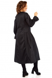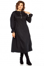 Это платье — воплощение современного комфорта, сочетающего в себе элементы винтажной романтики и структурированного минимализма. Свободный крой оверсайз гарантирует, что вы будете чувствовать себя комфортно в любой ситуации. Складки в нижней части платья мастерски скрывают область бедер и живота, создавая визуально стройный и летящий силуэт. Объемные рукава — это главный модный акцент сезона. Они придают образу современный шик и динамику, превращая простое черное платье в заявление о стиле. Это платье — идеальная база. Носите его с высокими сапогами и пальто для деловых встреч, или дополните яркими аксессуарами и грубыми ботинками для стильного городского образа. Платье-миди в стиле оверсайз. Силуэт свободный, прямой в верхней части, расширяющийся к низу за счет глубоких складок. Техническое описание: • Горловина закрытая, круглая, обеспечивающая строгий, но элегантный вид. Застежка на петли пуговицы. • Линия плеча спущенная, что усиливает эффект оверсайз. • Рукава объемные, типа «фонарик», с выраженной сборкой по окату и внизу. Заканчиваются манжетами на резинке. • В юбке объем создается за счет глубоких, вертикальных встречных складок , расположенных симметрично спереди и сзади. Складки начинаются примерно от линии бедра, обеспечивая идеальную посадку и свободу движения. • Дополнительно: имеются боковые карманы в швах для удобства. длина платья 125см, длина рукава 62 см
