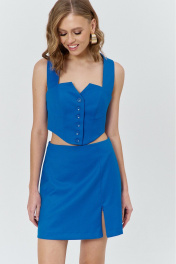 Круглос着ный укороченный жилет с рельефами для стильных повседневных образов COCKTAIL M105-2 синий
