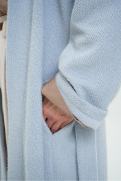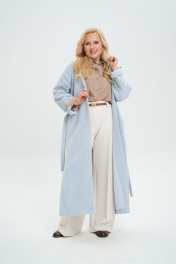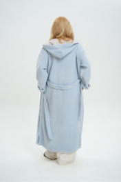 Кардиган среднего объема, свободного силуэта, длиной до щиколотки. На полочке – цельнокроенные отстроченные подборта. В боковых швах – карманы. Линия плеча спущена. Рукава – втачные, длинные, широкие. Капюшон — объемный, состоящий из двух деталей, на подкладке.