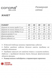 Жакет из костюмной ткани полуприлегающего силуэта. Воротник отложной с лацканами, по борту жакет застегивается на потойные петли. По талии протягивается пояс-бант. Жакет на подкладке.