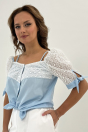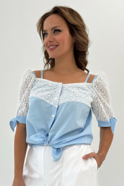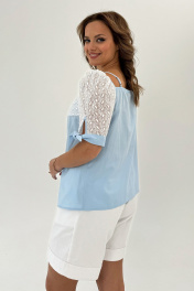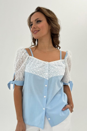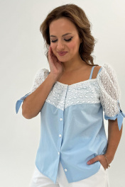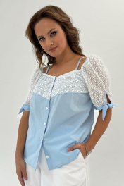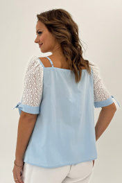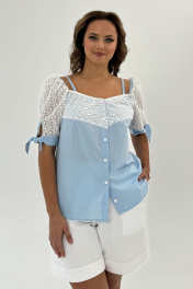 Летняя блузка с кружевными вставками и рукавами-фонариками Condra 16058 голубой