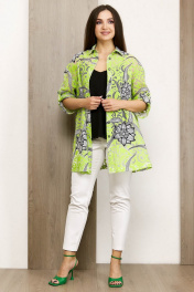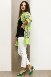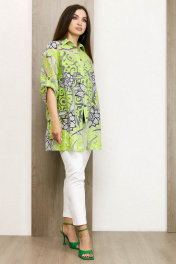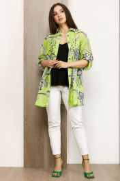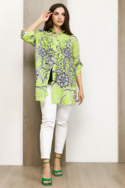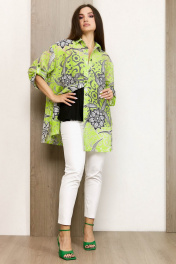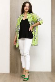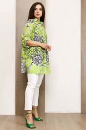 Нарядная блузка с разрезами по бокам. Блузка прямого силуэта на пуговицах. Рукав ¾. Длина рукава регулируется патой. Имеется отложной воротник на стойке. Можно комбинировать и экспериментировать с различными образами. Эта великолепная блузка станет неотъемлемой часть Вашего гардероба. Добавьте топ, юбку, брюки, модные аксессуары, и вы будете неотразимы. ВНИМАНИЕ: топ в комплект не входит.