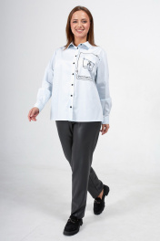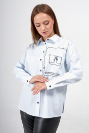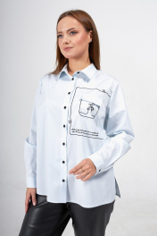 Голубая блузка-рубашка с вышивкой для делового образа Condra 16261 голубой