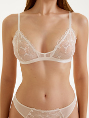 Бельё ADORE – пленительность и чувственность в каждой детали. Нежное цветочное кружево и полупрозрачная сетка создают идеальный баланс, который подчеркнёт романтичность и изысканность вашего образа. • без каркасов • V-образная линия декольте • мягкие треугольные чашки • нежное цветочное кружево • под грудью и по спинке широкая эластичная тесьма • полупрозрачная сеточка • регулируемые по плечам бретели • застёжка по спинке на крючки • сохранение формы и цвета после многочисленных стирок при соблюдении рекомендаций по уходу.