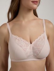 Классическая серия белья Aura создана из неэластичного функционального трикотажа и кружева с растительным рисунком. Белье эффектно подчеркивает женственные линии и гарантирует безупречную поддержку, необходимую для обладательниц пышных форм. • мягкая чашка с тройным диагональным членением • верхняя деталь чашки украшена кружевом • без каркасов • функциональный маечный стан • регулируемые бретели • широкий размерный ряд • великолепная посадка на средних и больших размерах • безупречная поддержка и абсолютный комфорт.
