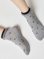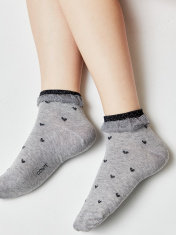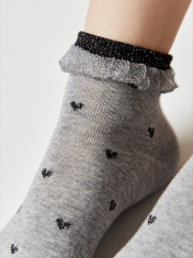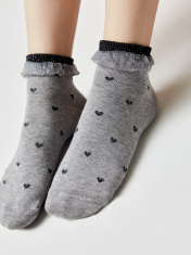 Хлопковые носки с воздушным бортом и сердечками из нитей люрекса созданы, чтобы расставлять оригинальные акценты в повседневном и спортивном образе.