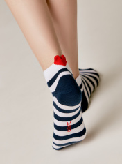 Короткие хлопковые носки с пикотом-«сердечком» на резинке созданы специально для девушек, живущих активной жизнью. Идеально подходят под спортивную обувь.