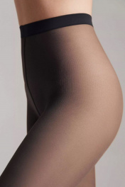 Тонкие матовые, устойчивые к затяжкам эластичные колготки, однородные по всей длине, с использованием технологии прессового плетения, создающего эффект тюля, плоский шов, хлопковая ластовица.