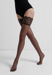 Тонкие чулки с рисунком «в горошек» и широкой ажурной резинкой – то, что нужно для стильных образов и абсолютной уверенности в себе!· самоподдерживающаяся ажурная резинка· плотное облегание · эластичные и легкие.