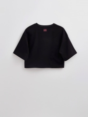 Укороченная футболка из хлопка с рисунком «Generation» станет основой для множества расслабленных базовых образов, а стильный рисунок добавит вашему повседневному гардеробу больше индивидуальности. • прямой крой • укороченная модель • круглый вырез горловины с планкой в рубчик • спущенная линия плеч • короткие втачные рукава • мягкий и приятный к телу хлопок • печатный рисунок «Generation» • по спинке - лаконичная печать с логотипом бренда • сохранение формы и цвета при соблюдении рекомендаций по уходу • всегда приятно открывать новые грани в привычной вещи.