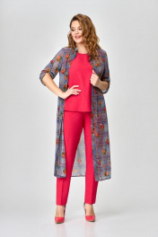 Блуза, брюки и кардиган в ярком стиле из текстиля и шифона DaLi 2629 красный