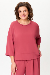 Красный комплект блузы и брюк из текстиля для ежедневных образов DaLi 3689.2 коралл
