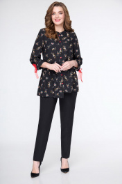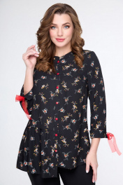 Блуза на каждый день с мультиколор и классическим стилем DaLi 5559 черный+цветы