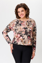 Мультиколорная трикотажная блуза длиной 65 см для hverday DaLi 5733 цветы_капучино