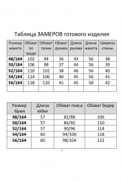Костюм женский двух предметный, состоящий из блузки и юбки. Блузка прилегающего силуэта, с фигурными рельефами по переду и спинке. Спереди внизу в рельефах обработаны разрезы. По спинке застежка на «молнию» по среднему шву. Рукав в точной, одношовный, длиной ¾. Юбка прямого силуэта, зауженная к низу, длиной за колено. По переду- таллиевые выточки. По заднему полотнищу-таллиевые вытачки, средний шов с застежкой на «молнию» и шлицей внизу. Притачной пояс сзади с резинкой и застежкой на петлю и пуговицу. Декором модели служит украшение в виде цветка7055.2 костюм женский двух предметный, состоящий из блузки и юбки. Блузка прилегающего силуэта, с фигурными рельефами по переду и спинке. Спереди внизу в рельефах обработаны разрезы. По спинке застежка на «молнию» по среднему шву. Рукав в точной, одношовный, длиной ¾. Юбка прямого силуэта, зауженная к низу, длиной за колено. По переду- таллиевые выточки. По заднему полотнищу-таллиевые вытачки, средний шов с застежкой на «молнию» и шлицей внизу. Притачной пояс сзади с резинкой и застежкой на петлю и пуговицу. Декором модели служит украшение в виде цветка. Длина блузы 56 см, длина юбки 61 см.