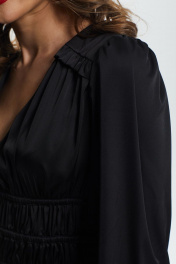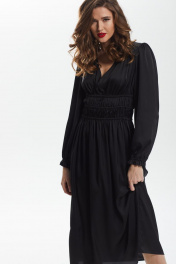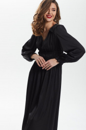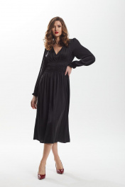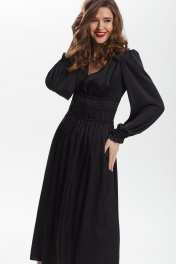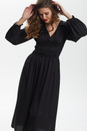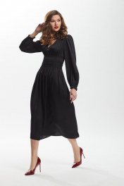 платье приталенное с сборкой и рюшей из искусственного шёлка DAVA 138 черный